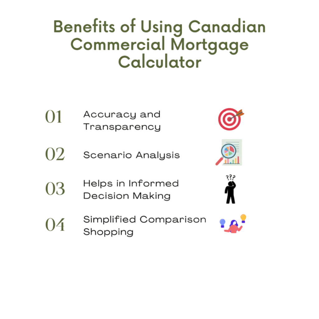 4. Simplified Comparison Shopping: Canadian commercial mortgage Calculators permits borrowers to compare offers from multiple lenders, offering a more efficient and transparent borrowing process.
